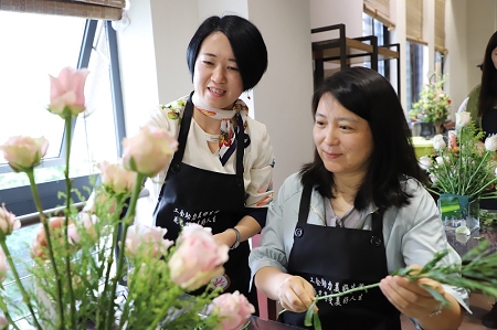 就在當天,首期政府補貼花藝班同時(shí)開(kāi)課,23名插花愛(ài)好者走進(jìn)花藝課堂,學(xué)習花藝知識,掌握花藝技能,與花草對話(huà)間,修身養性。