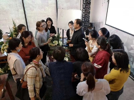 花藝專(zhuān)項師資班開(kāi)班儀式上,特邀嘉賓寧波風(fēng)景園林協(xié)會(huì )秘書(shū)長(cháng)薛振培作開(kāi)班動(dòng)員講話(huà)。他首先祝賀中國插花藝術(shù)館創(chuàng )辦花藝專(zhuān)項師資班,推動(dòng)中國插花藝術(shù)的傳承與普及,并殷切寄語(yǔ)學(xué)員們扎實(shí)學(xué)好技能,為推動(dòng)花藝事業(yè)繁榮、為提升市民生命品質(zhì)貢獻新的力量。