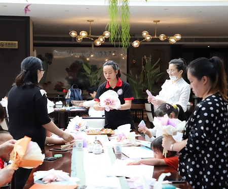 六一節當天,鄞州區關(guān)心下一代志愿者協(xié)會(huì )藍海綠業(yè)綠色幫扶工作室聯(lián)合花緣麗舍酒店,為小朋友們送上棒棒糖手捧花DIY“六一”專(zhuān)場(chǎng)!家長(cháng)帶領(lǐng)小朋友們,為好愛(ài)的棒棒糖扎起一個(gè)漂亮的花束,大手牽小手,一起徜徉在棒棒糖的甜蜜世界~