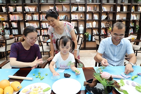 “看,我的綠色水餃”“我要做個(gè)紫色‘飛碟’水餃”7月12日,藍海綠業(yè)關(guān)心下一代工作委員會(huì )、藍海綠業(yè)綠色幫扶工作室攜手花緣麗舍酒店,濃情開(kāi)展“七彩童年,五色水餃”公益親子活動(dòng)?,F場(chǎng)主理老師潘丹萍帶領(lǐng)10組親子家庭,開(kāi)展五色水餃制作,心意滿(mǎn)滿(mǎn),創(chuàng )意無(wú)限,將家的美味與健康成長(cháng)的美好祝福,一起包進(jìn)這五色水餃,共同留住七彩童年。
