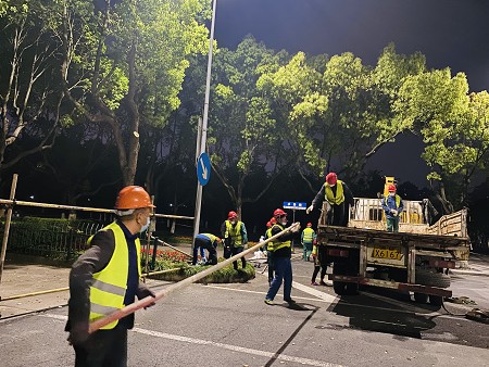 “疫”聲令下,使命必達!在鄞州區住建局的號召下,19日晚0時(shí),藍海綠業(yè)抗疫救援小隊和青年突擊隊再次響應抗疫工作,支援學(xué)府路圍擋拆除工作。鄞州區住建局祁科長(cháng)赴現場(chǎng)指揮部署,協(xié)同作戰,凝聚抗疫攻堅合力。藍海綠業(yè)黨支部書(shū)記錢(qián)增龍、工程管理部副總經(jīng)理陳曉波率隊星夜馳援,帶領(lǐng)隊員按時(shí)完成了學(xué)府路圍擋拆除任務(wù)。